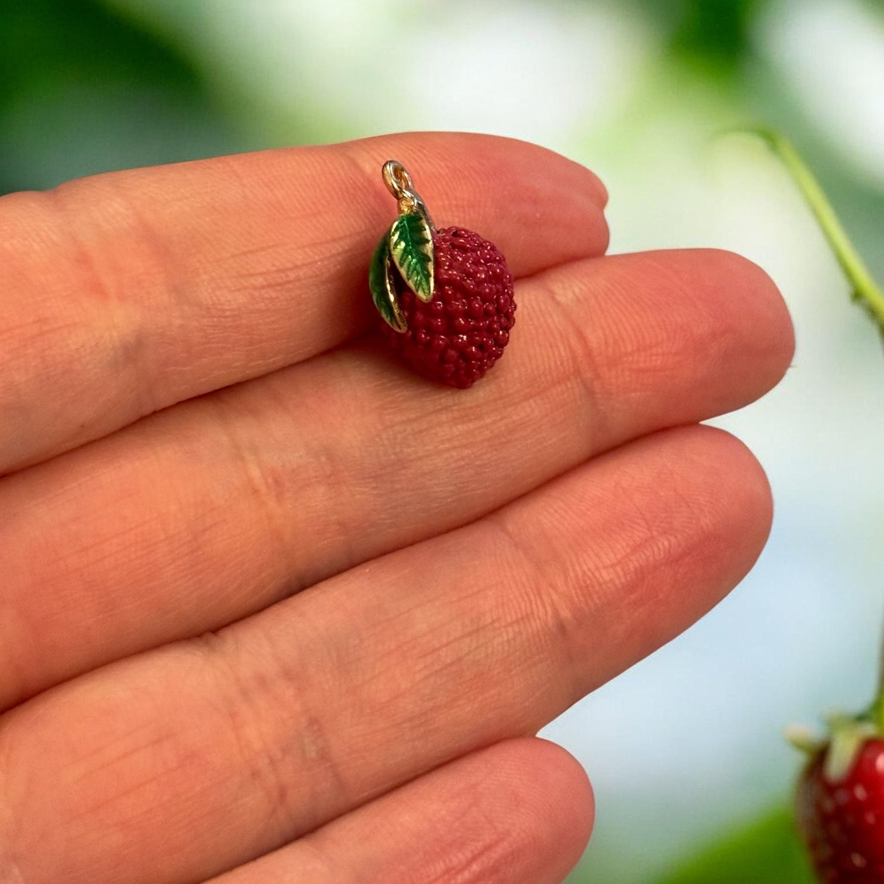 3D Pink Raspberry Charm – 24K Gold Plated Enamel Pendant