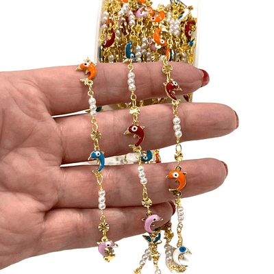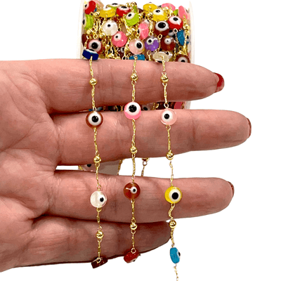 Evil Eye Rosary Chain, 24Kt Gold Plated Rosary Chain,