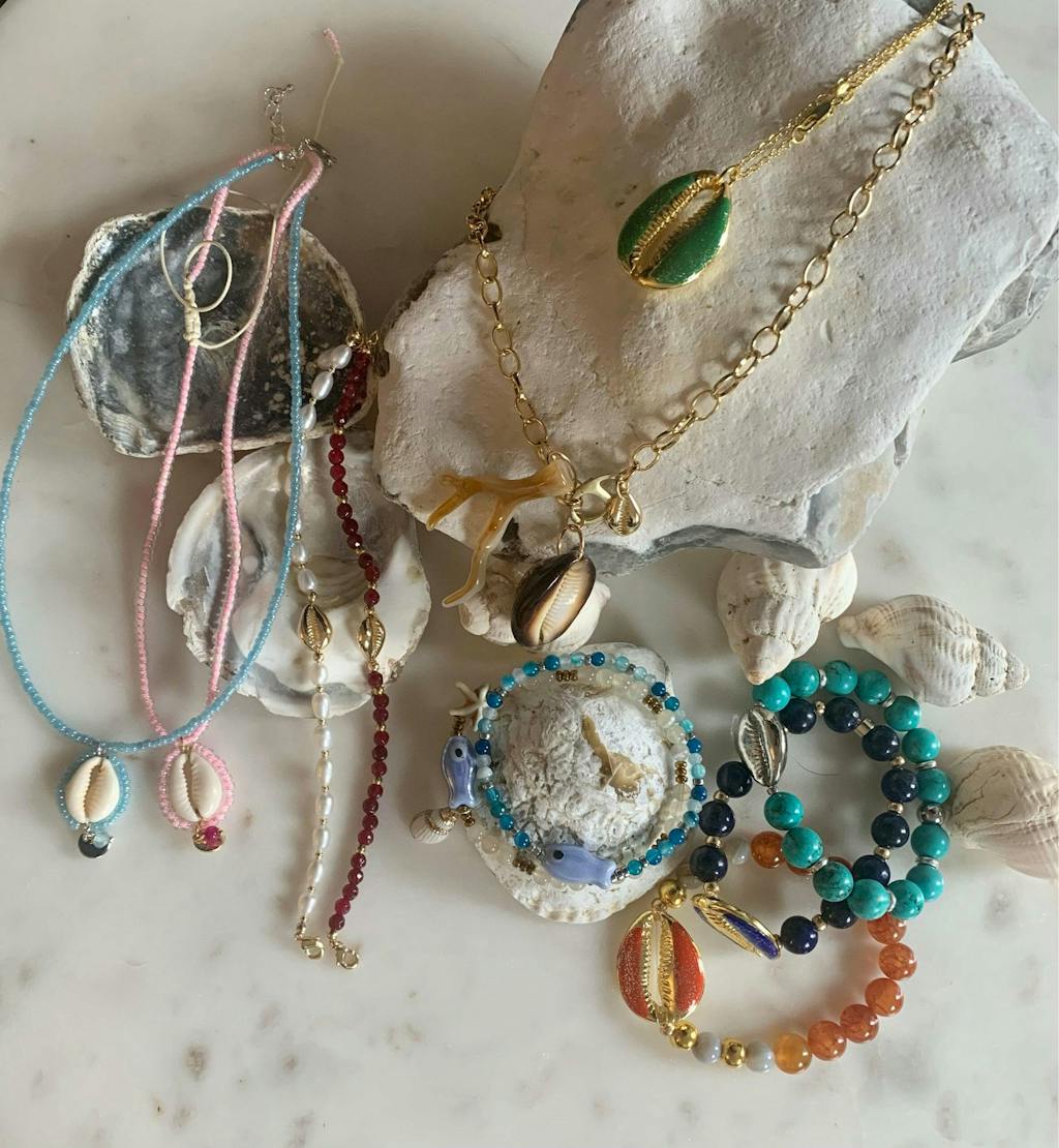 24Kt Gold Plated Brass Glitter Green Enamelled Cowrie Charm,