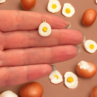 3D Toast & Egg Charm – Enamel & 24Kt Gold-Plated Breakfast Pendant