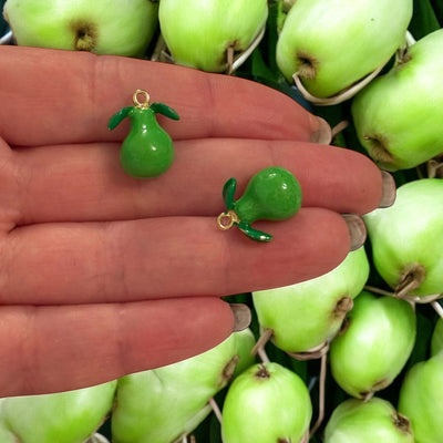 Green Pear Charm – 3D Enamel Fruit Charm , 24K Gold Plated Brass