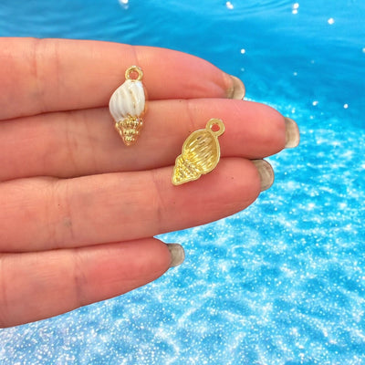 3D Conch Shell Charm – Blue Enamel & 24Kt Gold-Plated Ocean Pendant