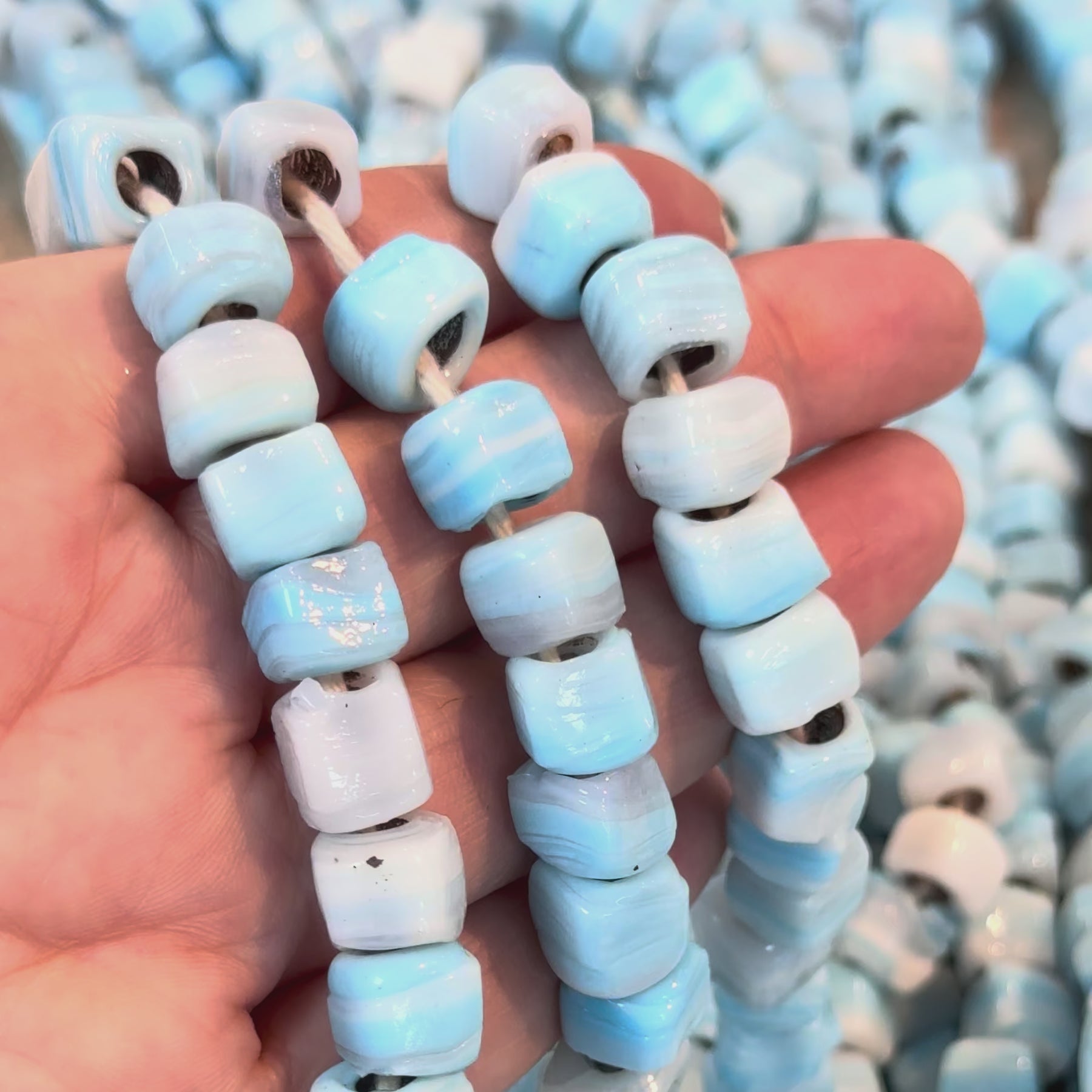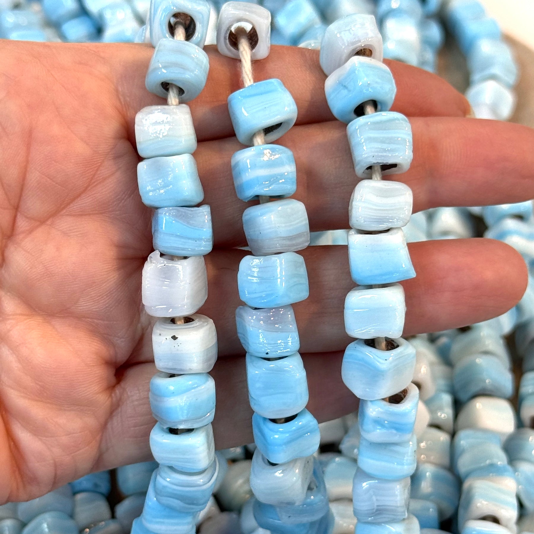 Traditional Turkish Artisan Handmade Cube Glass Beads, Large Hole Glass Beads, 25 Beads in a pack