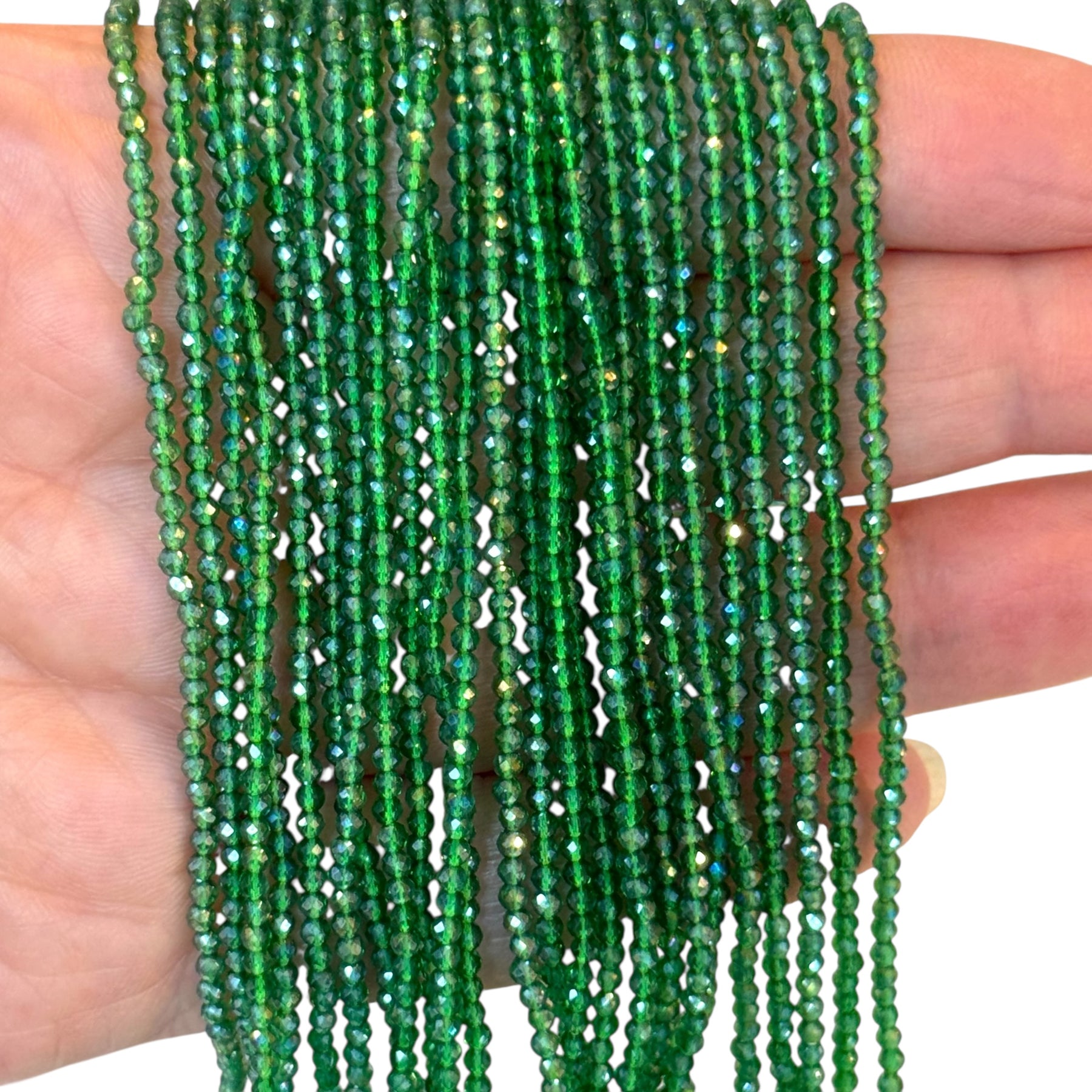 2mm Emerald Green AB Faceted Round Crystal Beads, PBC2R17