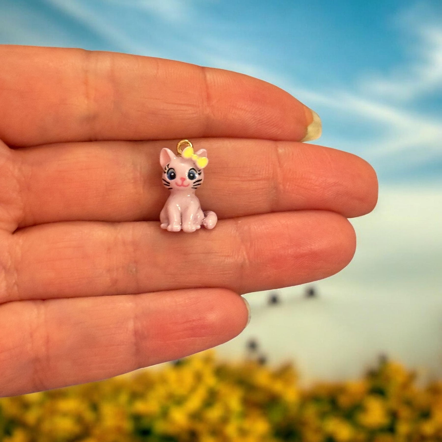 Pink Cat Enamel Charm with Yellow Bow, Cute Kitten Pendant, Cat Jewelry Charm, Animal Charm, Kawaii Charm