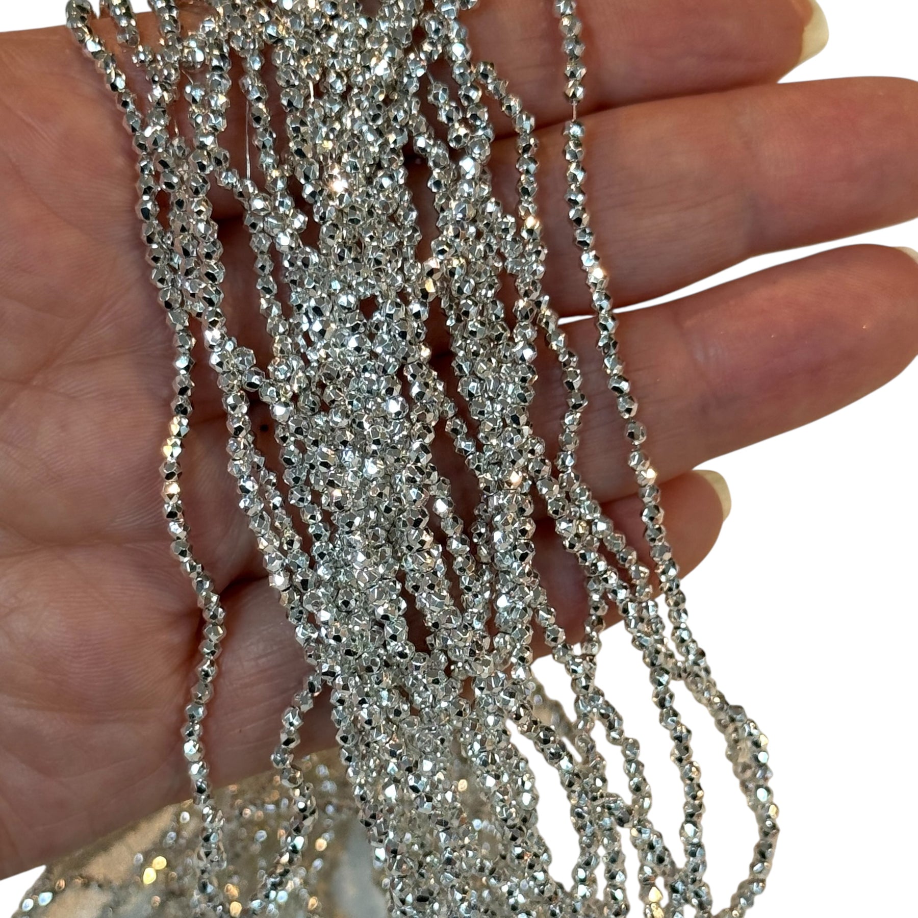 Beautifully faceted round crystal beads in a sleek Silver tone.