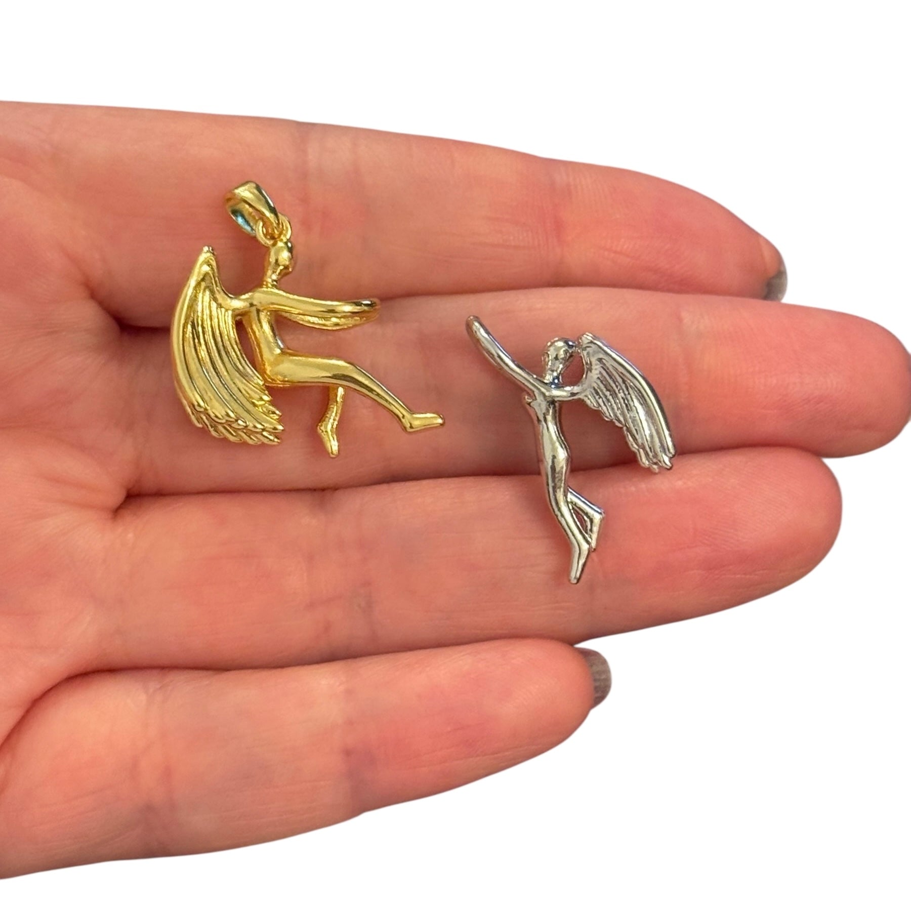 Crafted from high-quality brass with a luxurious two-tone finish24K gold plating and rhodium plating — the figures intertwine to form a single, inseparable design. Only one angel includes a bail, reinforcing the powerful symbolism of one love, one bond, one destiny.