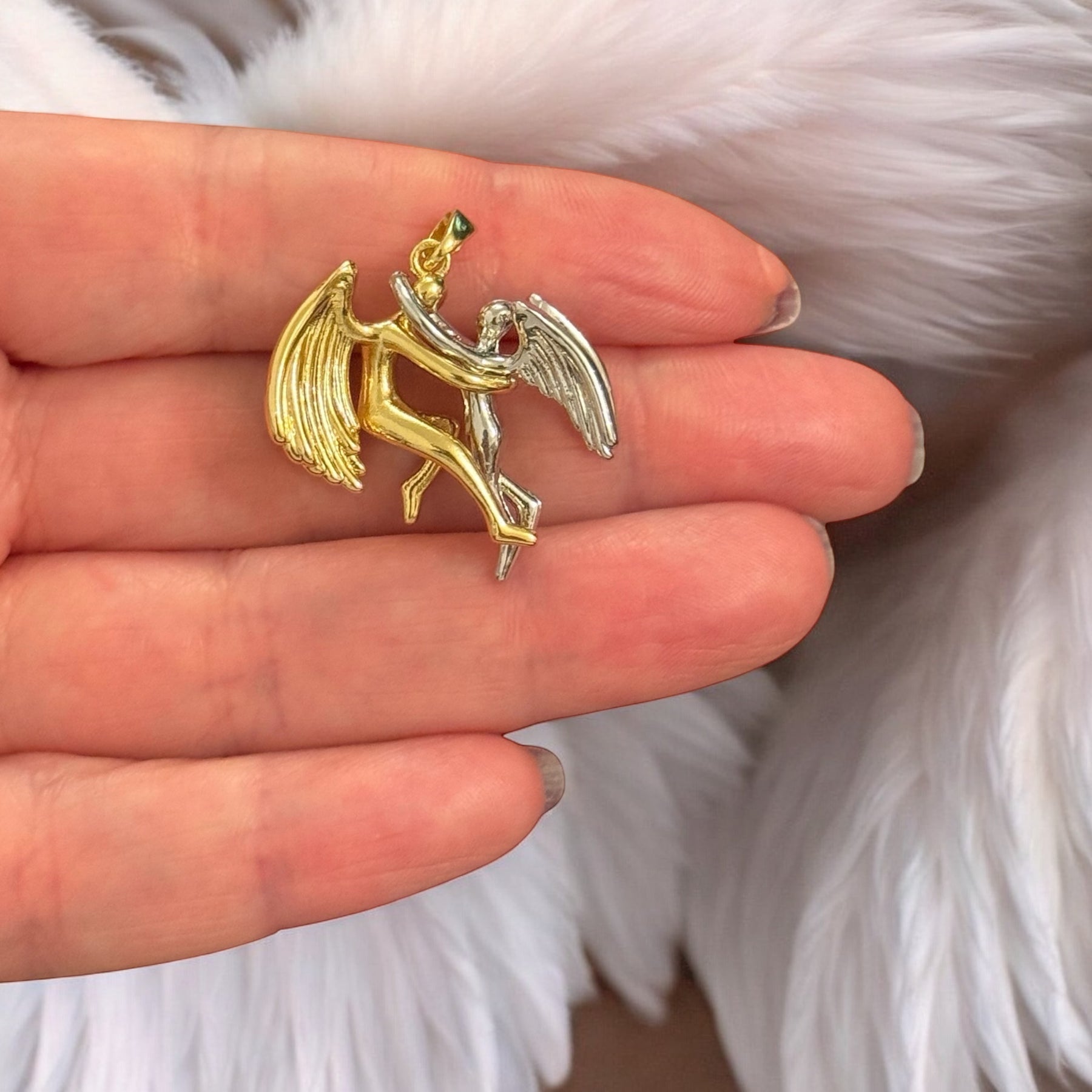 Eternal Love Angels Pendant – Two-Tone Gold & Rhodium Embracing Angel Couple