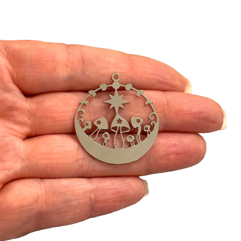Stainless Steel Phases of Moon and Mushrooms Charm, Laser Cut Phases of Moon and Mushrooms Charm